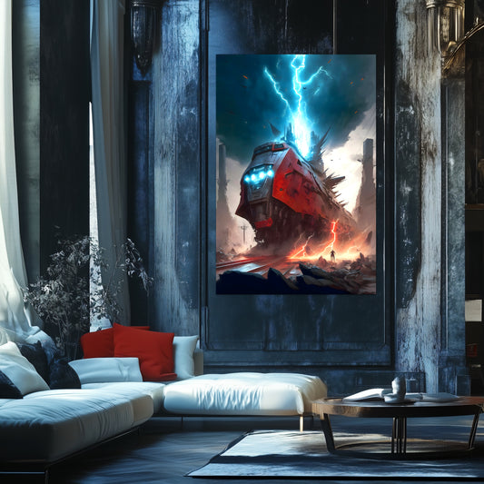 Diesel Train Poster – Crimson Thunderclad | Awe-Inspiring Wall Art for Sci-Fi & Fantasy Train Enthusiasts | Unique and Exclusive Artwork
