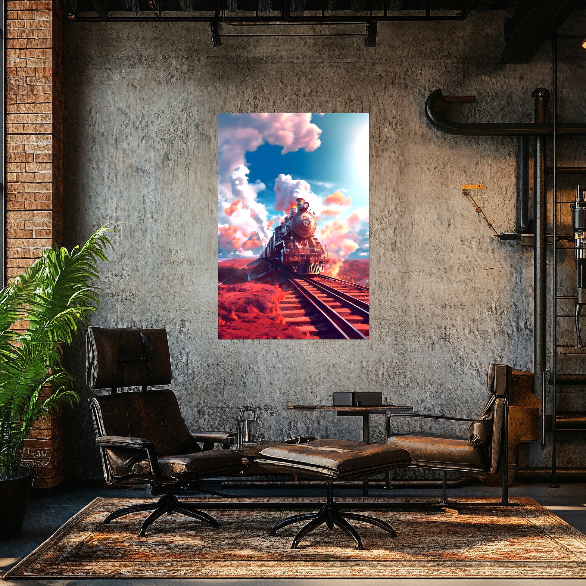 Let this epic locomotive poster serve as a daily reminder that our world is full of adventure, wonder, and miracles waiting to unfold. Bring this unique piece of art into your space and let it inspire you to remember that every day is extraordinary. Don’t just admire it—make it yours and transform your space into a realm where imagination knows no bounds. Own a piece of the extraordinary today.