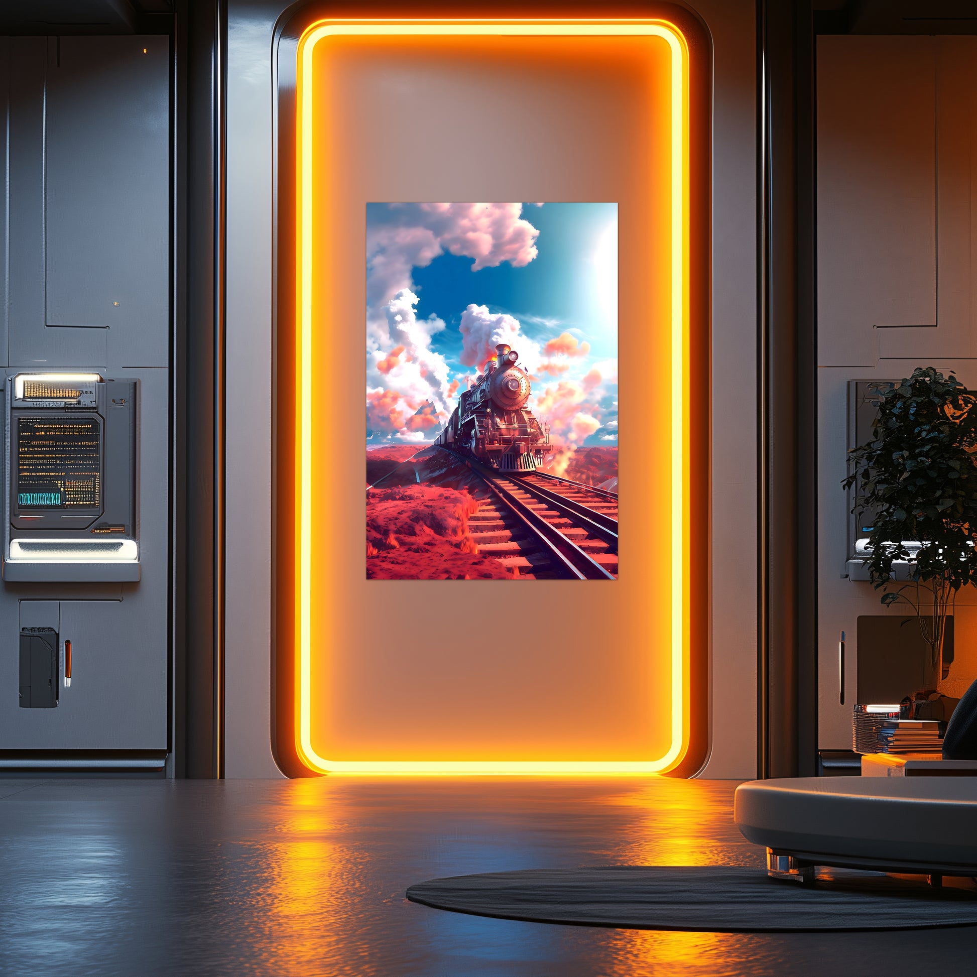 Bring the Sunfire Skyliner to life with a choice of premium paper finishes that capture every cyberpunk detail. Select from fine art (285gsm) for rich depth, semi-gloss (180gsm) for a sleek finish, or matte (200gsm) for a bold, modern look. This vertical poster delivers stunning clarity and intense color, immersing you in the gritty allure of a futuristic locomotive.